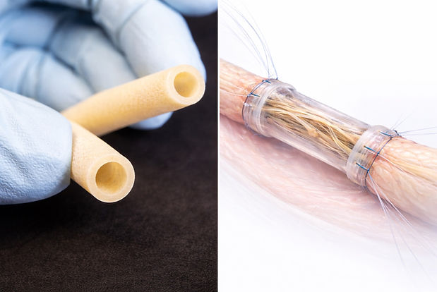 Spider silk’s unique properties, high tensile strength, elasticity, biocompatibility, slow enzymatic degradation, while remaining lightweight—make it an ideal candidate for many biomedical applications. Silk fibres not only facilitate axonal regrowth but also provide a scaffold for Schwann cell migration and proliferation, crucial for nerve regeneration. A few recent studies have successfully created spider silk-based conduit archetypes capable of bridging nerve gaps of up to 20 cm in animal models, including rats and sheep.